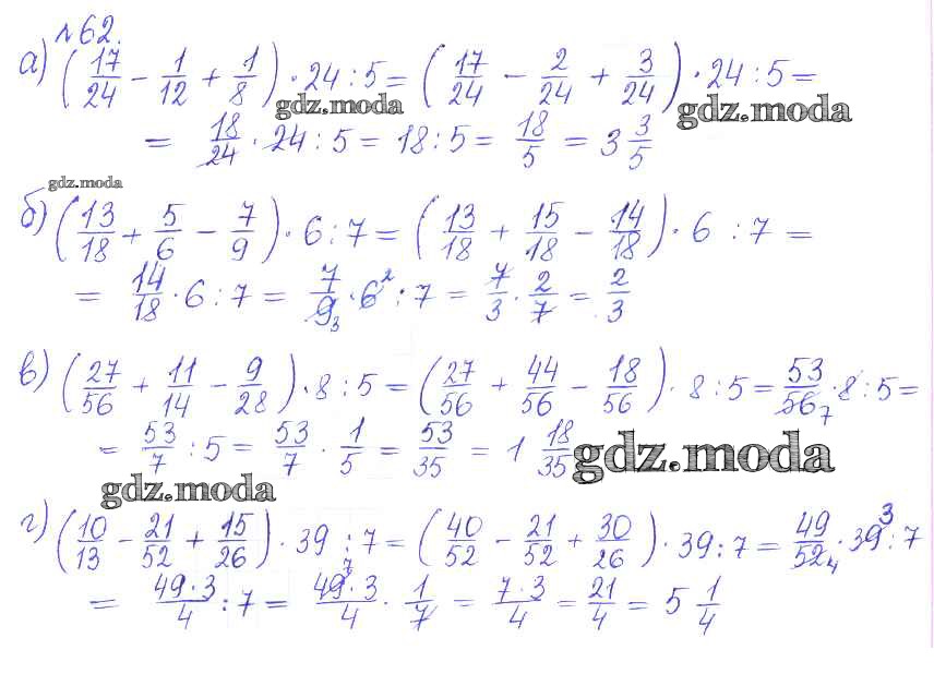 ОТВЕТ на задание № 62 Сборник задач и упражнений по Математике 6 класс Гамбарин
