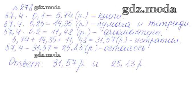 ОТВЕТ на задание № 278 Сборник задач и упражнений по Математике 6 класс Гамбарин