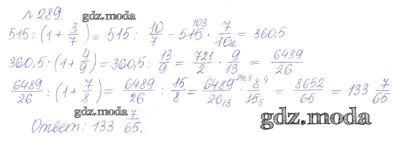 ОТВЕТ на задание № 289 Сборник задач и упражнений по Математике 6 класс Гамбарин