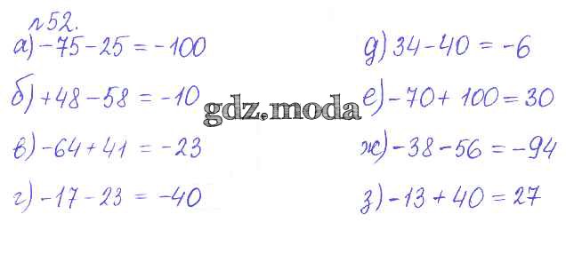 ОТВЕТ на задание № 52 Сборник задач и упражнений по Математике 6 класс Гамбарин