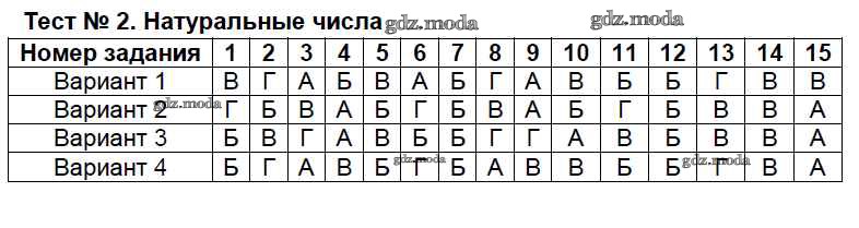 ГДЗ решение к заданию № Тест №2. Натуральные числа Математика 5-6 класс тесты Тульчинская Е.Е. Мнемозина 2015 ФГОС бесплатно на гдз.мода!