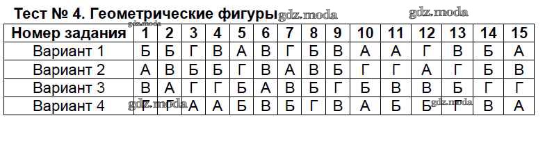 ОТВЕТ на задание № Тест №4. Геометрические фигуры Тесты по Математике 5-6 класс Тульчинская УМК