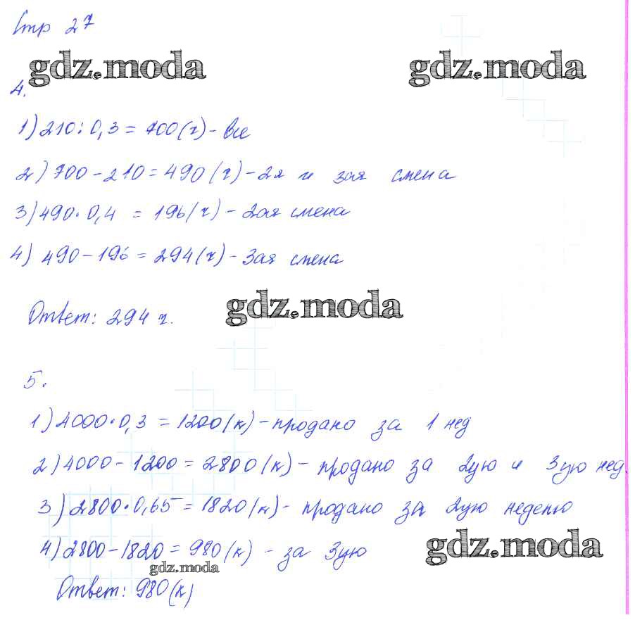 ГДЗ решение к заданию № 27 Математика 6 класс тетрадь для контрольных работ Зубарева И.И. Мнемозина 2020 Часть 1, Часть 2 ФГОС бесплатно на гдз.мода!