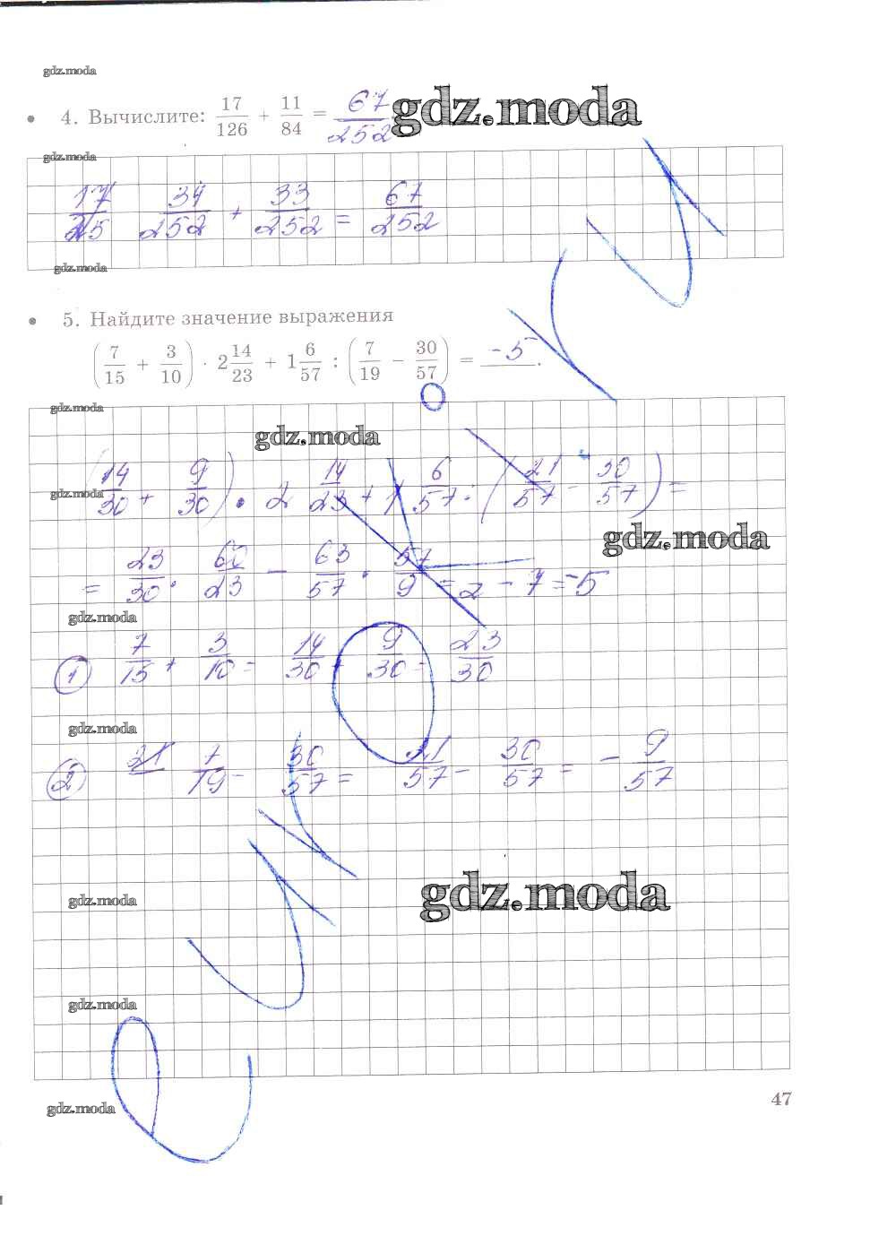 ГДЗ решение к заданию № 47 Математика 6 класс тетрадь для контрольных работ Зубарева И.И. Мнемозина 2020 Часть 1, Часть 2 ФГОС бесплатно на гдз.мода!