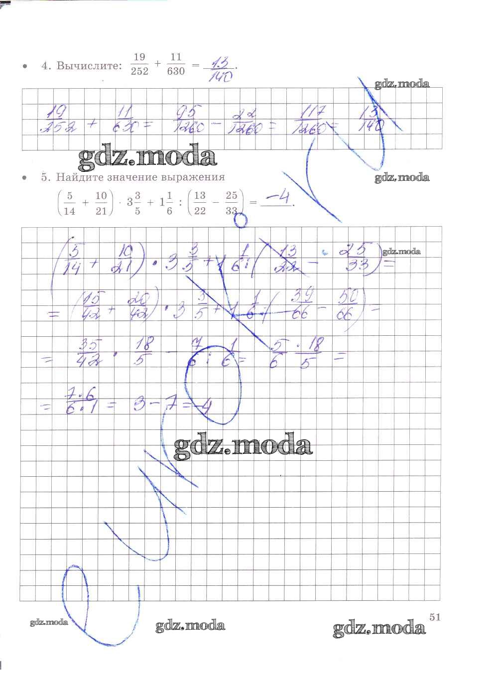 ГДЗ решение к заданию № 51 Математика 6 класс тетрадь для контрольных работ Зубарева И.И. Мнемозина 2020 Часть 1, Часть 2 ФГОС бесплатно на гдз.мода!