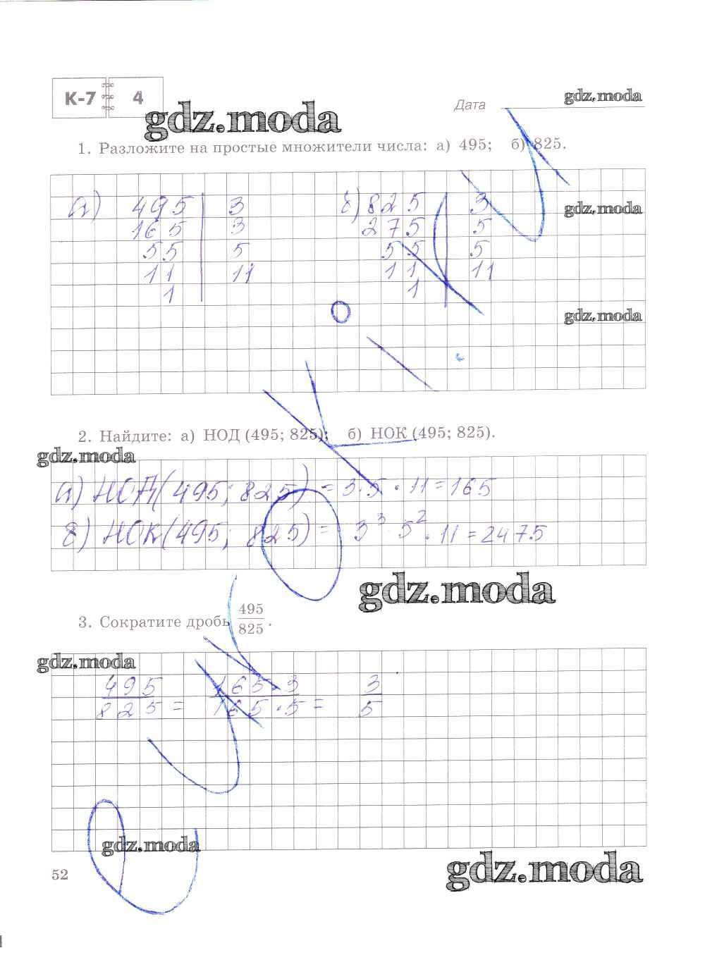 ГДЗ решение к заданию № 52 Математика 6 класс тетрадь для контрольных работ Зубарева И.И. Мнемозина 2020 Часть 1, Часть 2 ФГОС бесплатно на гдз.мода!