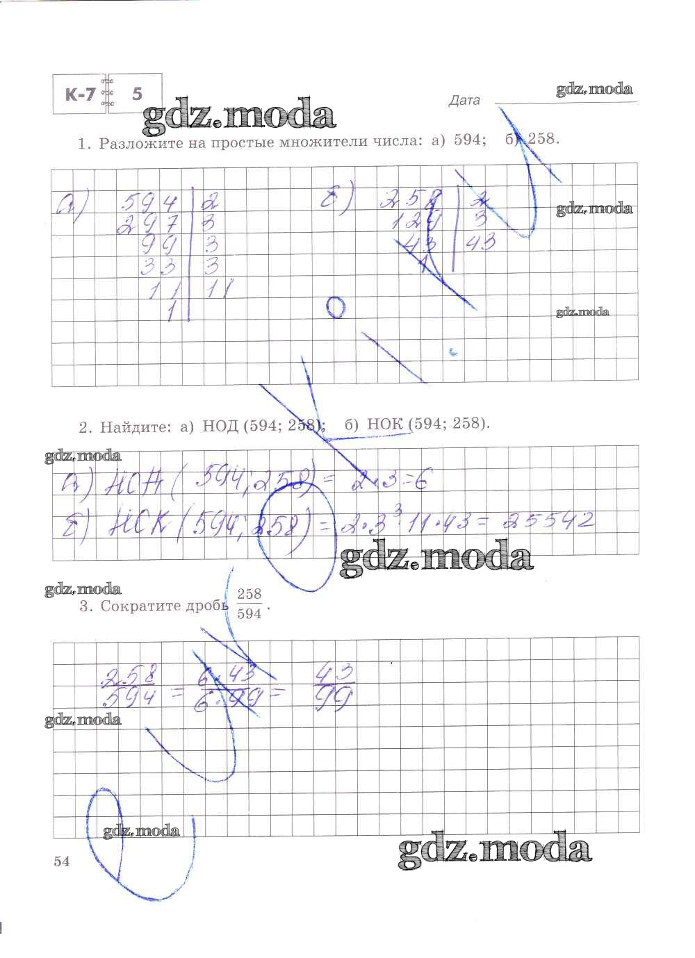 ГДЗ решение к заданию № 54 Математика 6 класс тетрадь для контрольных работ Зубарева И.И. Мнемозина 2020 Часть 1, Часть 2 ФГОС бесплатно на гдз.мода!