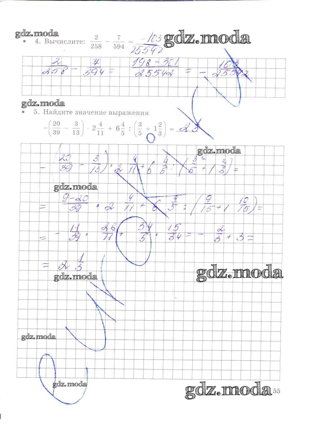 ГДЗ решение к заданию № 55 Математика 6 класс тетрадь для контрольных работ Зубарева И.И. Мнемозина 2020 Часть 1, Часть 2 ФГОС бесплатно на гдз.мода!