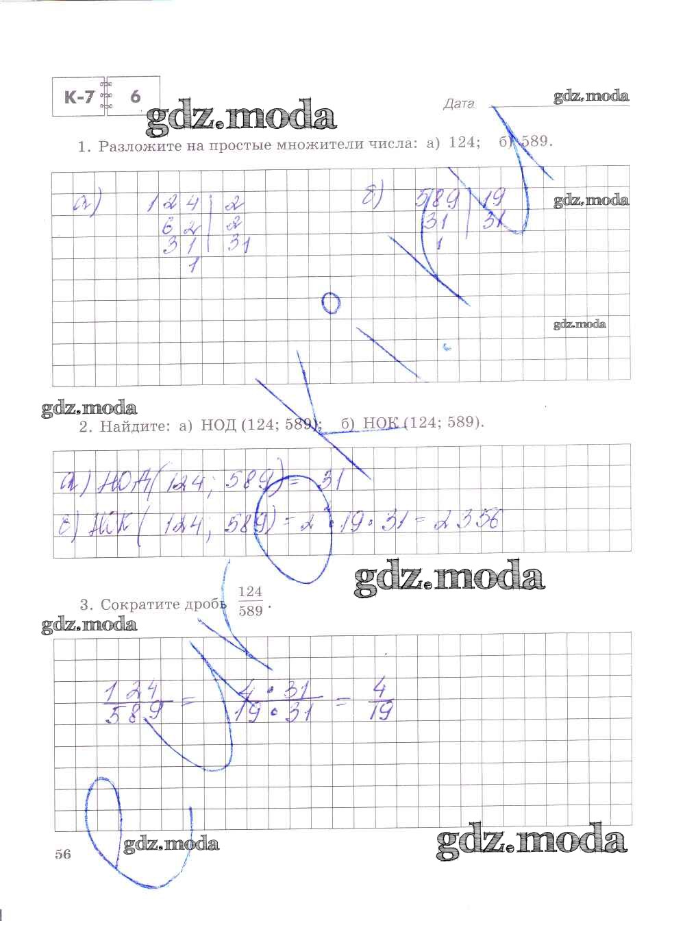 ГДЗ решение к заданию № 56 Математика 6 класс тетрадь для контрольных работ Зубарева И.И. Мнемозина 2020 Часть 1, Часть 2 ФГОС бесплатно на гдз.мода!