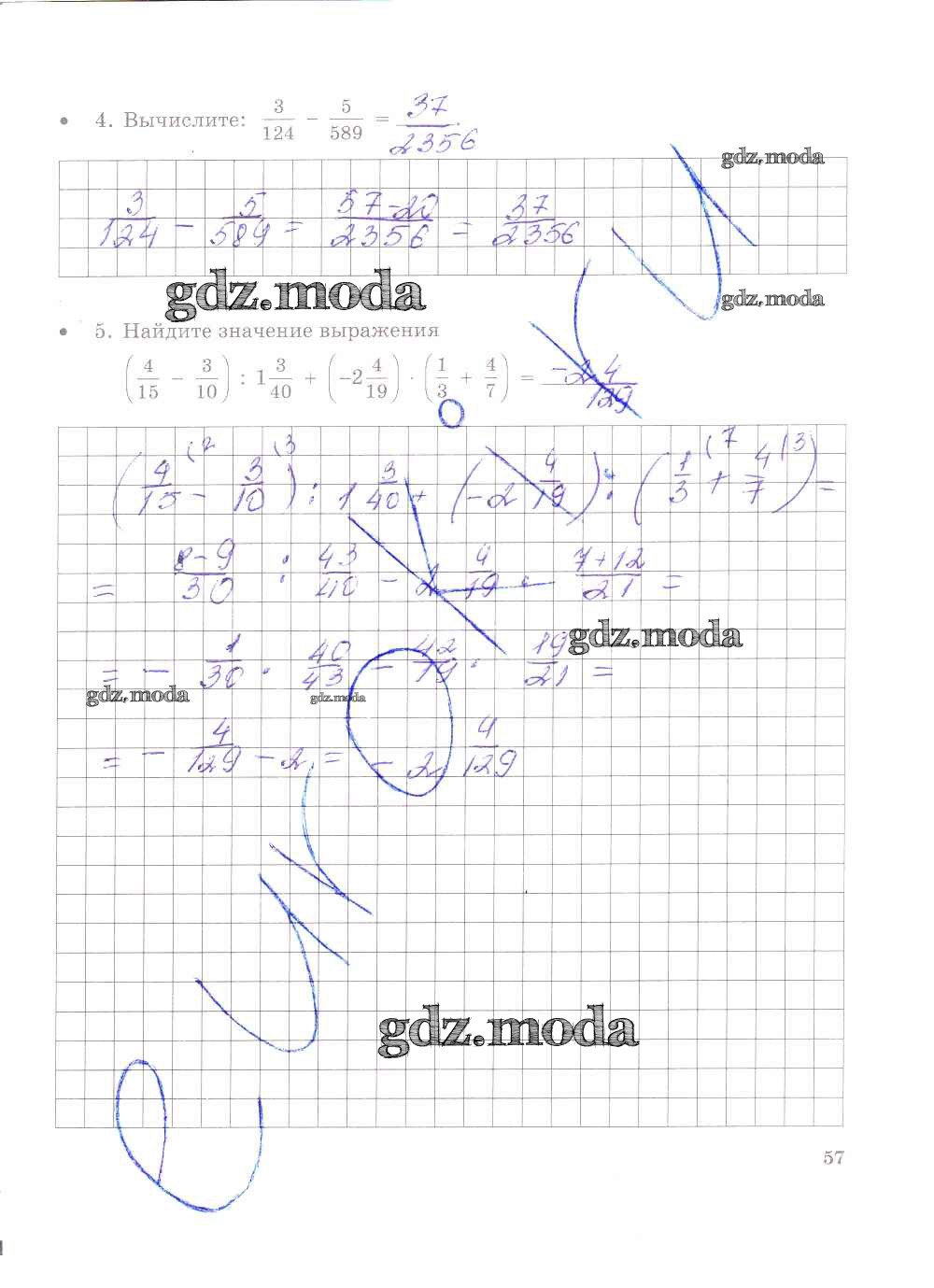 ГДЗ решение к заданию № 57 Математика 6 класс тетрадь для контрольных работ Зубарева И.И. Мнемозина 2020 Часть 1, Часть 2 ФГОС бесплатно на гдз.мода!