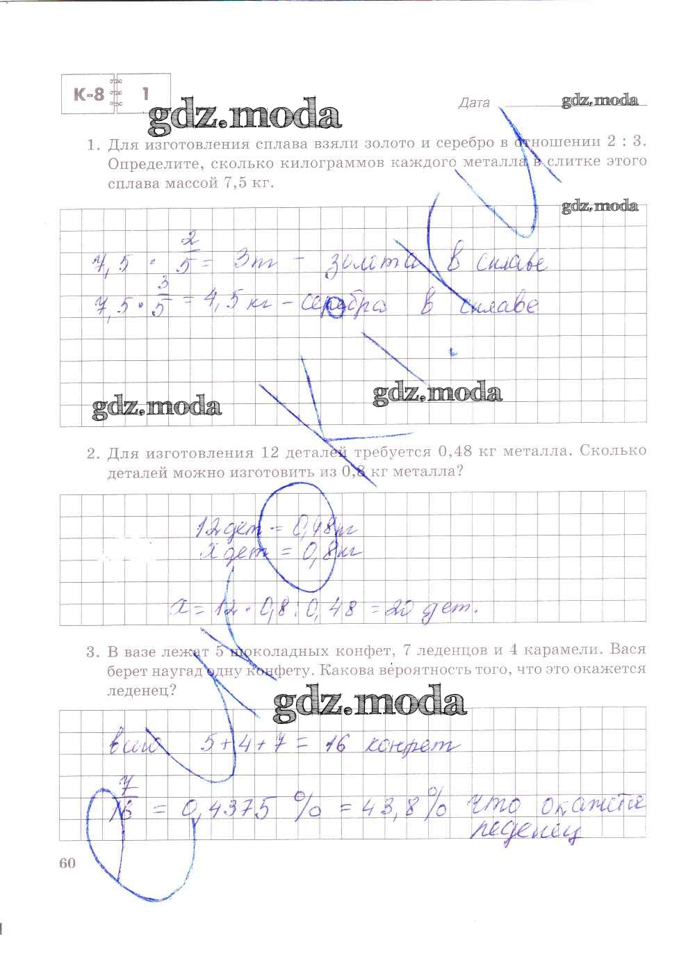 ГДЗ решение к заданию № 60 Математика 6 класс тетрадь для контрольных работ Зубарева И.И. Мнемозина 2020 Часть 1, Часть 2 ФГОС бесплатно на гдз.мода!