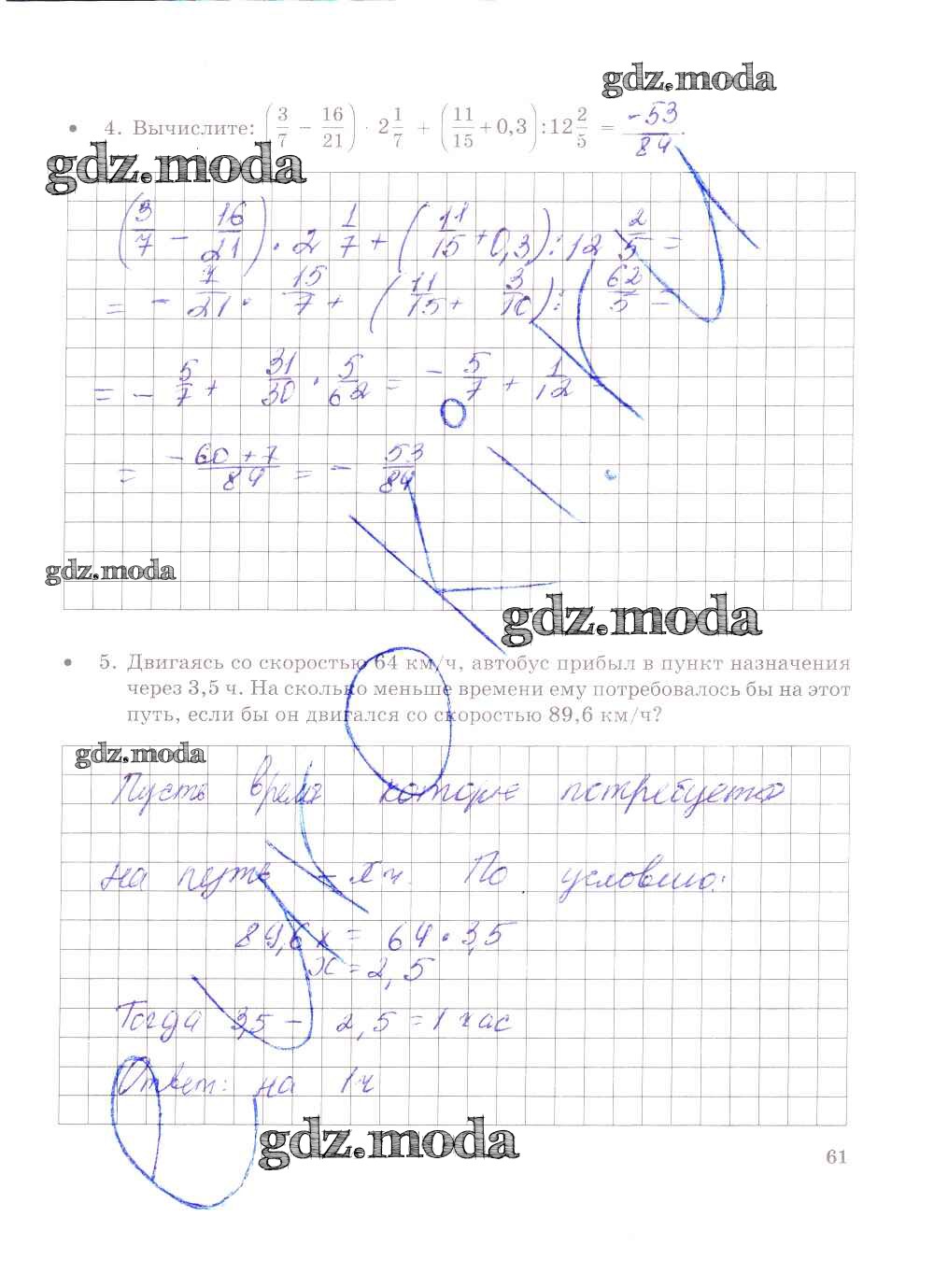 ГДЗ решение к заданию № 61 Математика 6 класс тетрадь для контрольных работ Зубарева И.И. Мнемозина 2020 Часть 1, Часть 2 ФГОС бесплатно на гдз.мода!
