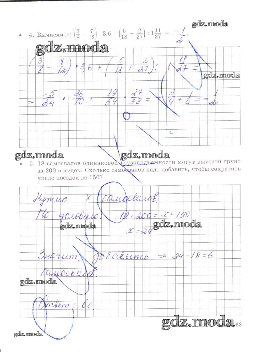 ГДЗ решение к заданию № 63 Математика 6 класс тетрадь для контрольных работ Зубарева И.И. Мнемозина 2020 Часть 1, Часть 2 ФГОС бесплатно на гдз.мода!