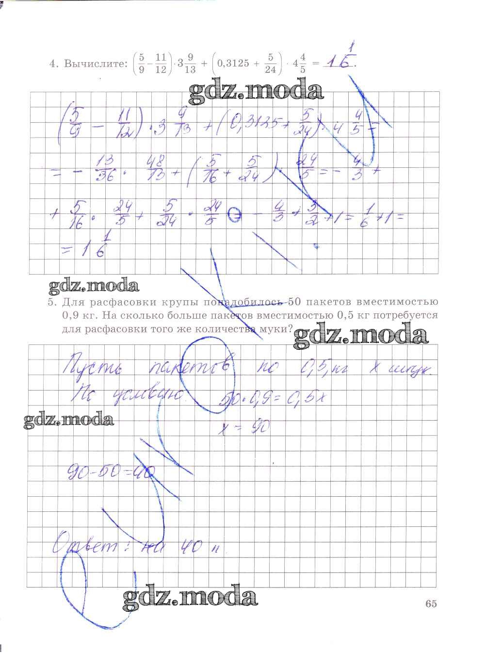 ГДЗ решение к заданию № 65 Математика 6 класс тетрадь для контрольных работ Зубарева И.И. Мнемозина 2020 Часть 1, Часть 2 ФГОС бесплатно на гдз.мода!