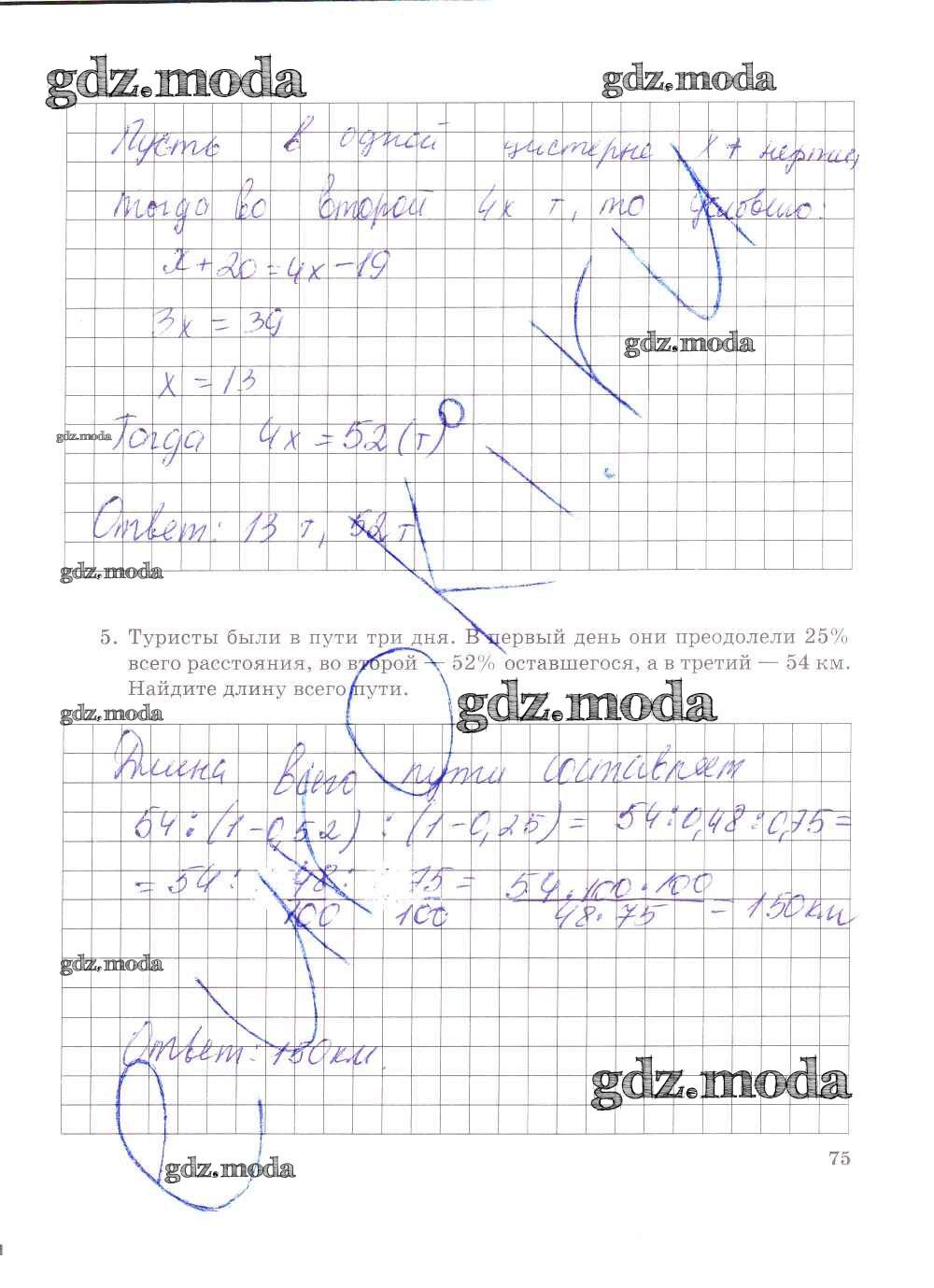 ГДЗ решение к заданию № 75 Математика 6 класс тетрадь для контрольных работ Зубарева И.И. Мнемозина 2020 Часть 1, Часть 2 ФГОС бесплатно на гдз.мода!
