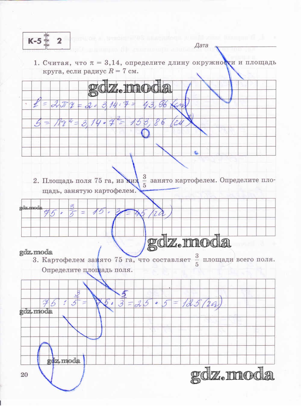 ГДЗ решение к заданию № 20 Математика 6 класс тетрадь для контрольных работ Зубарева И.И. Мнемозина 2020 Часть 1, Часть 2 ФГОС бесплатно на гдз.мода!