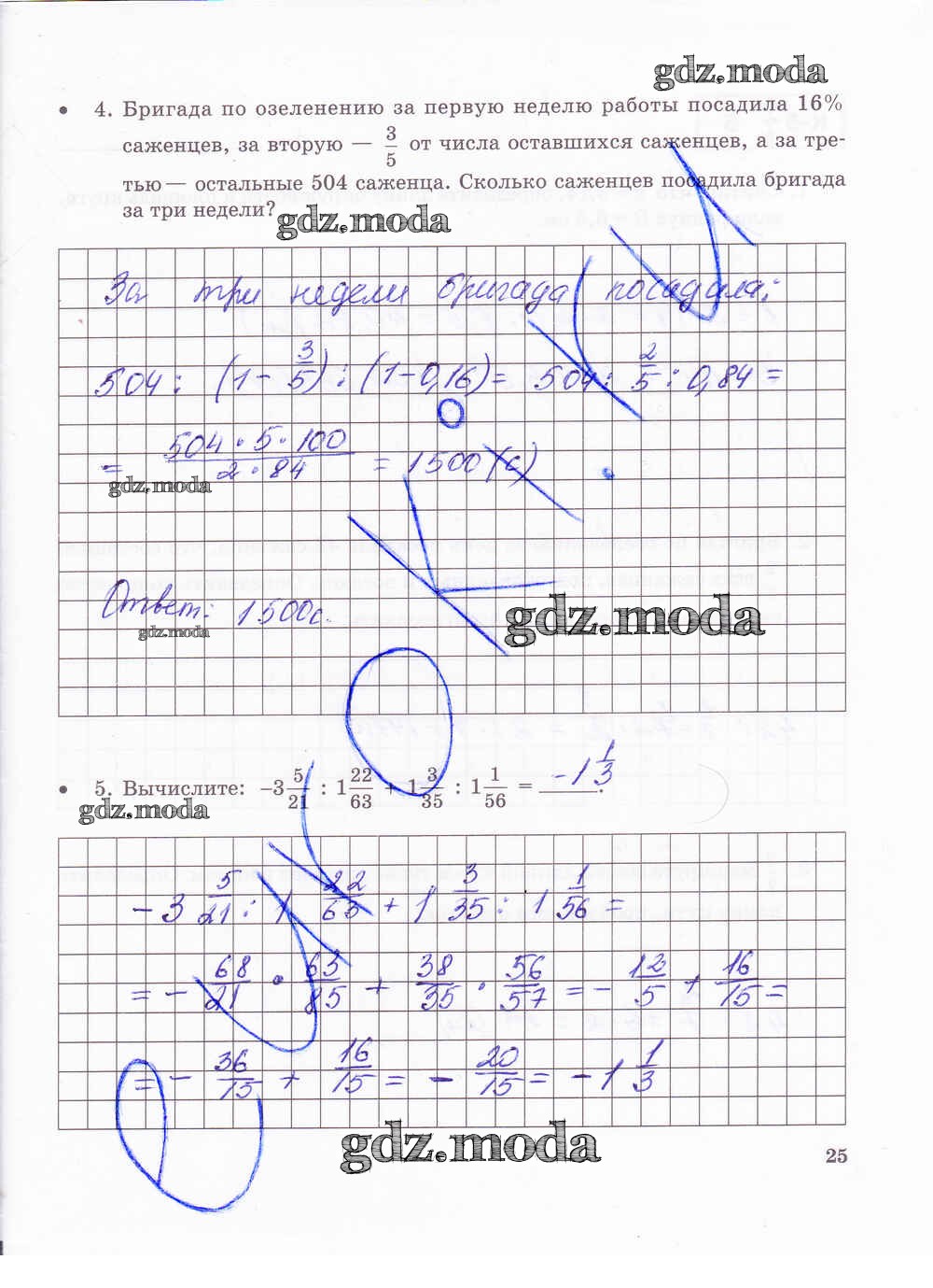 ГДЗ решение к заданию № 25 Математика 6 класс тетрадь для контрольных работ Зубарева И.И. Мнемозина 2020 Часть 1, Часть 2 ФГОС бесплатно на гдз.мода!