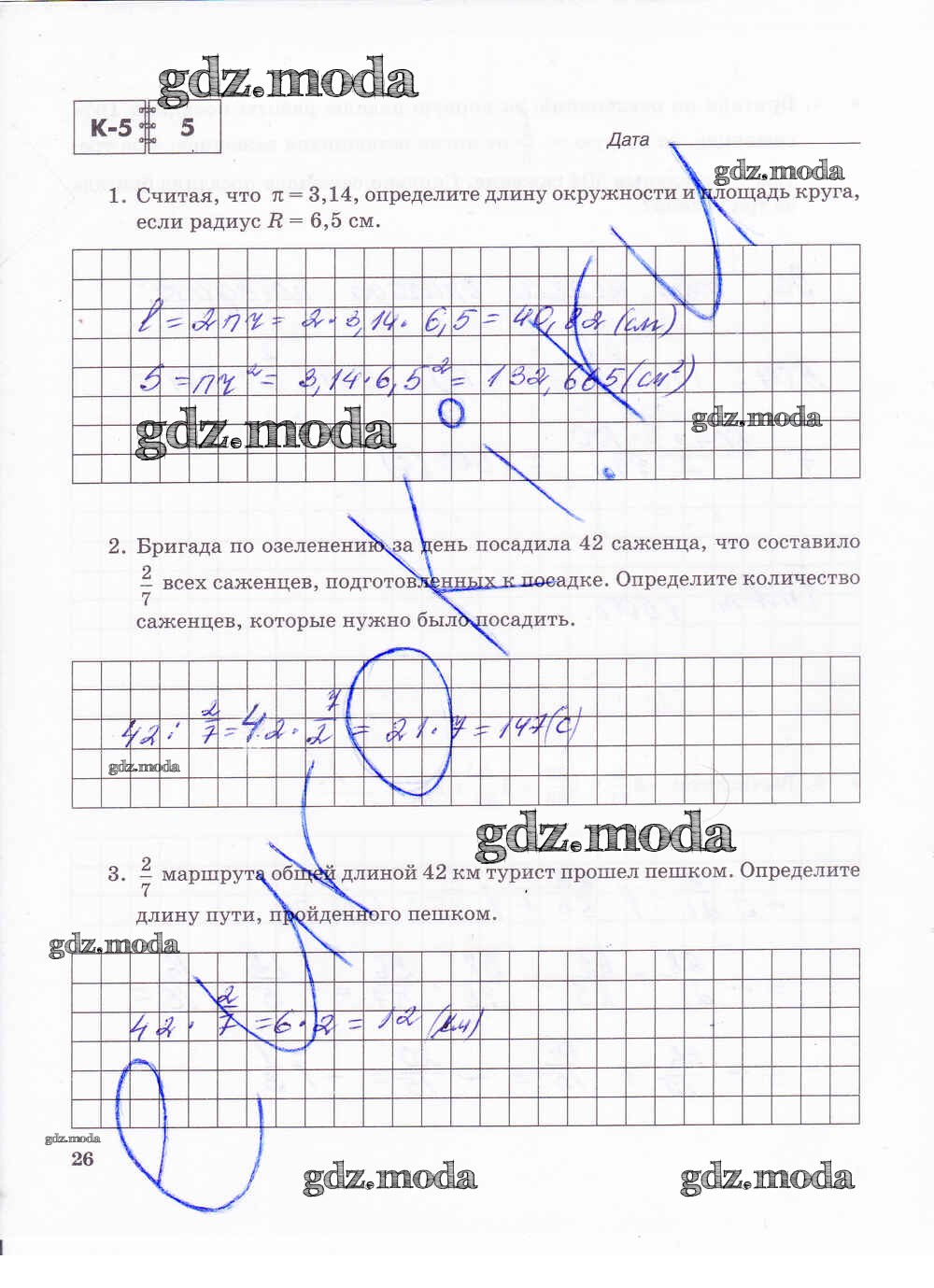 ГДЗ решение к заданию № 26 Математика 6 класс тетрадь для контрольных работ Зубарева И.И. Мнемозина 2020 Часть 1, Часть 2 ФГОС бесплатно на гдз.мода!