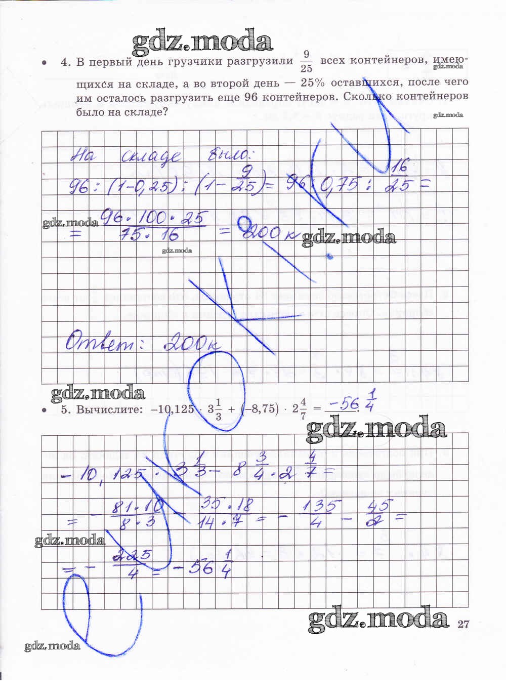 ГДЗ решение к заданию № 27 Математика 6 класс тетрадь для контрольных работ Зубарева И.И. Мнемозина 2020 Часть 1, Часть 2 ФГОС бесплатно на гдз.мода!
