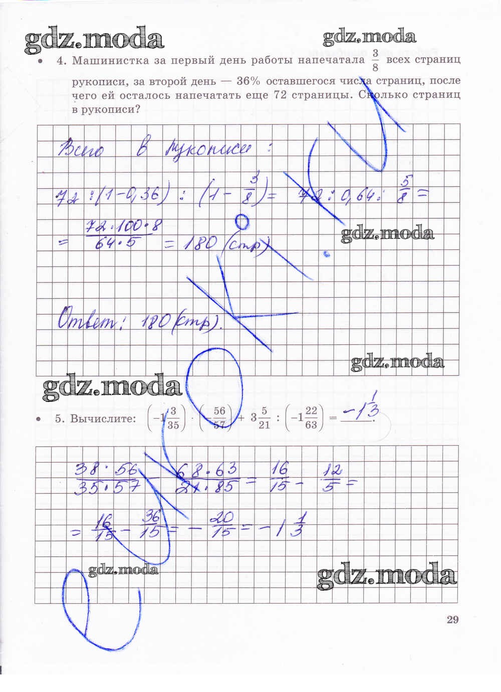 ГДЗ решение к заданию № 29 Математика 6 класс тетрадь для контрольных работ Зубарева И.И. Мнемозина 2020 Часть 1, Часть 2 ФГОС бесплатно на гдз.мода!
