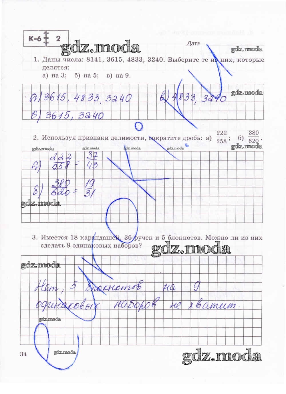 ГДЗ решение к заданию № 34 Математика 6 класс тетрадь для контрольных работ Зубарева И.И. Мнемозина 2020 Часть 1, Часть 2 ФГОС бесплатно на гдз.мода!