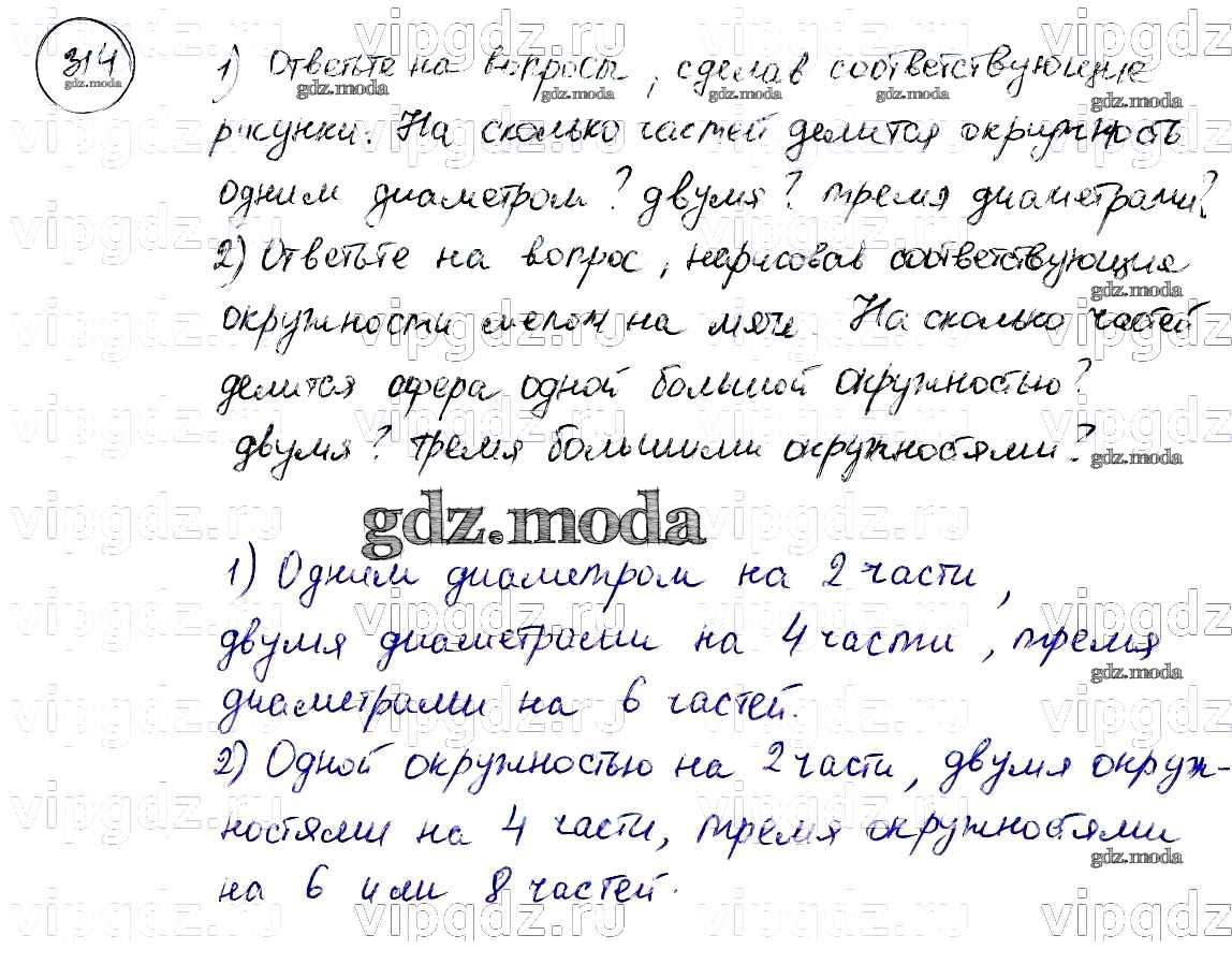 ОТВЕТ на задание № 314 Учебник по Математике 6 класс Бунимович Сферы