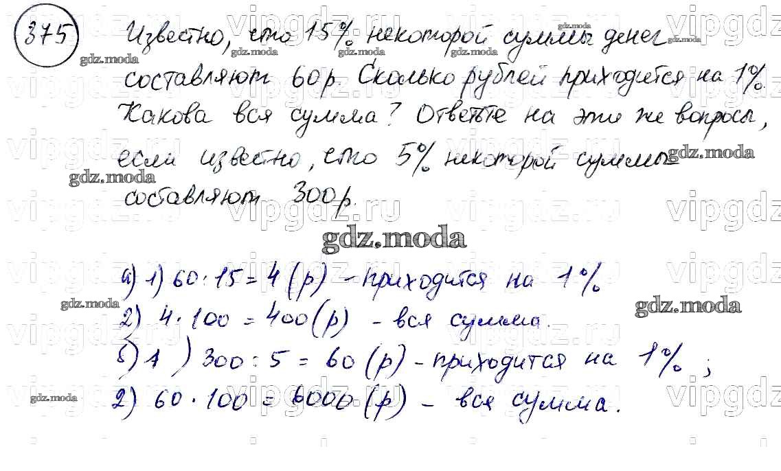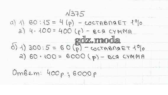 ОТВЕТ на задание № 375 Учебник по Математике 6 класс Бунимович Сферы