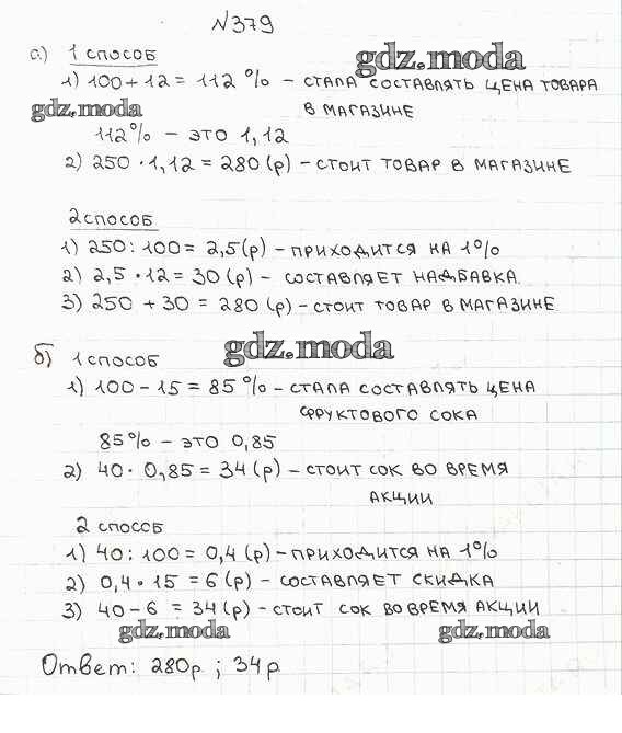 ОТВЕТ на задание № 379 Учебник по Математике 6 класс Бунимович Сферы