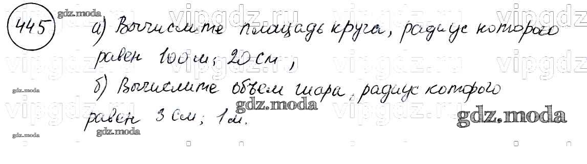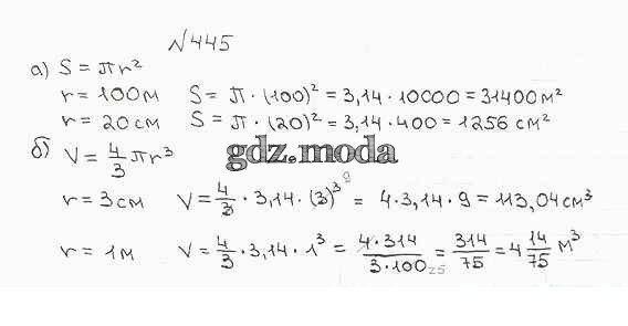ОТВЕТ на задание № 445 Учебник по Математике 6 класс Бунимович Сферы