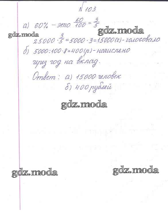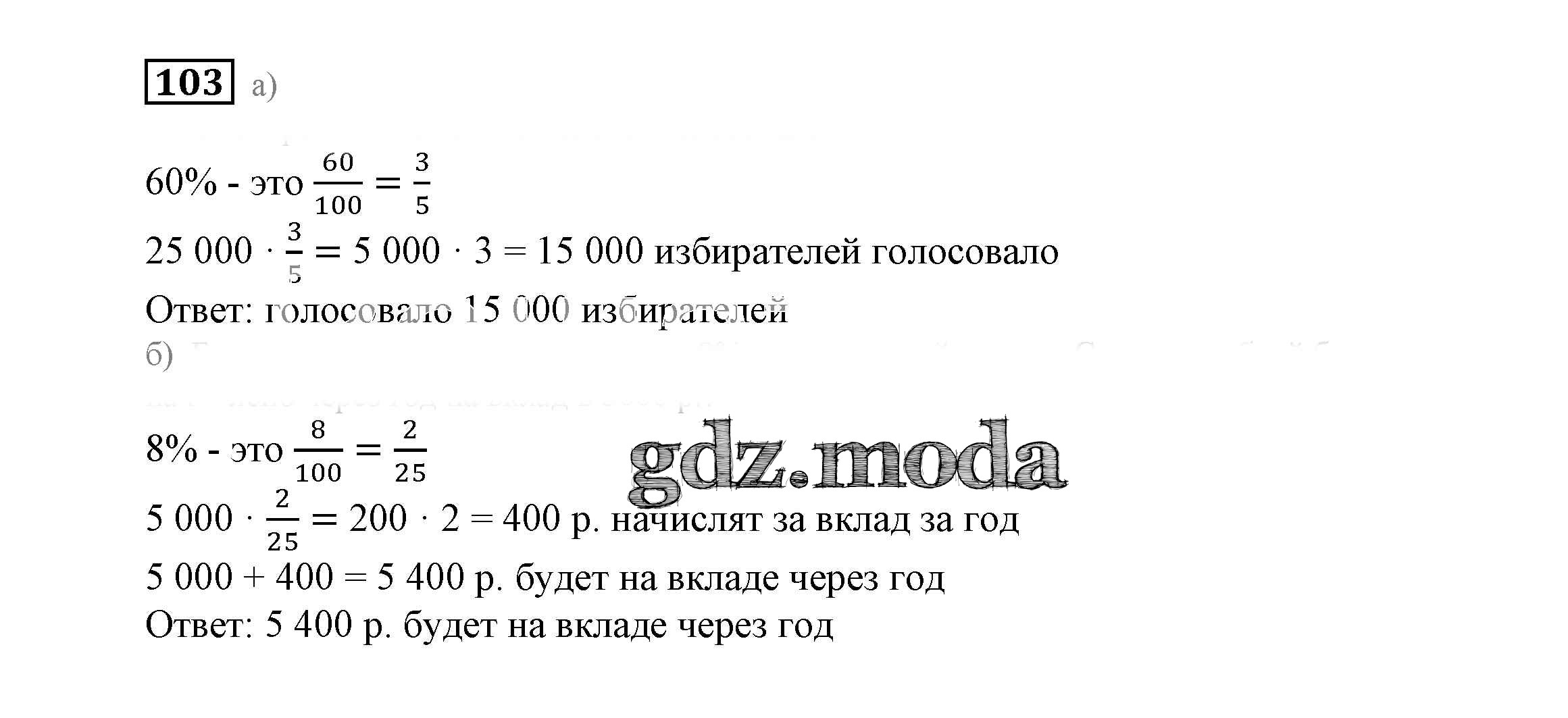 ГДЗ решение к заданию № 103 Математика 6 класс Дорофеев Г.В. Просвещение 2014 ФГОС бесплатно на гдз.мода!