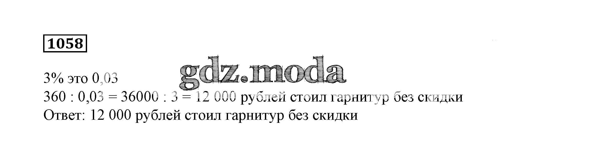 ОТВЕТ на задание № 1058 Учебник по Математике 6 класс Дорофеев Академический школьный учебник