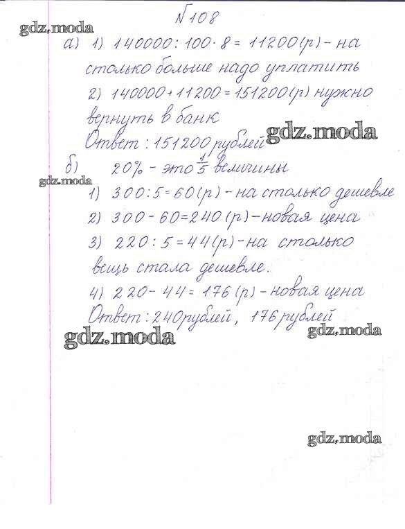 ОТВЕТ на задание № 108 Учебник по Математике 6 класс Дорофеев Академический школьный учебник