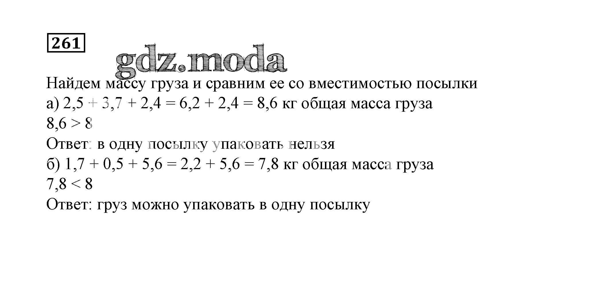 ОТВЕТ на задание № 261 Учебник по Математике 6 класс Дорофеев Академический школьный учебник