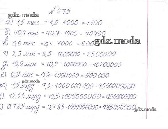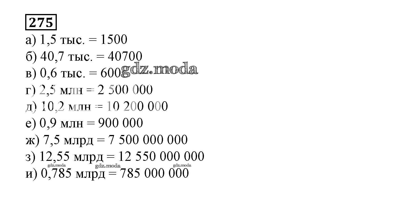 ОТВЕТ на задание № 275 Учебник по Математике 6 класс Дорофеев Академический школьный учебник
