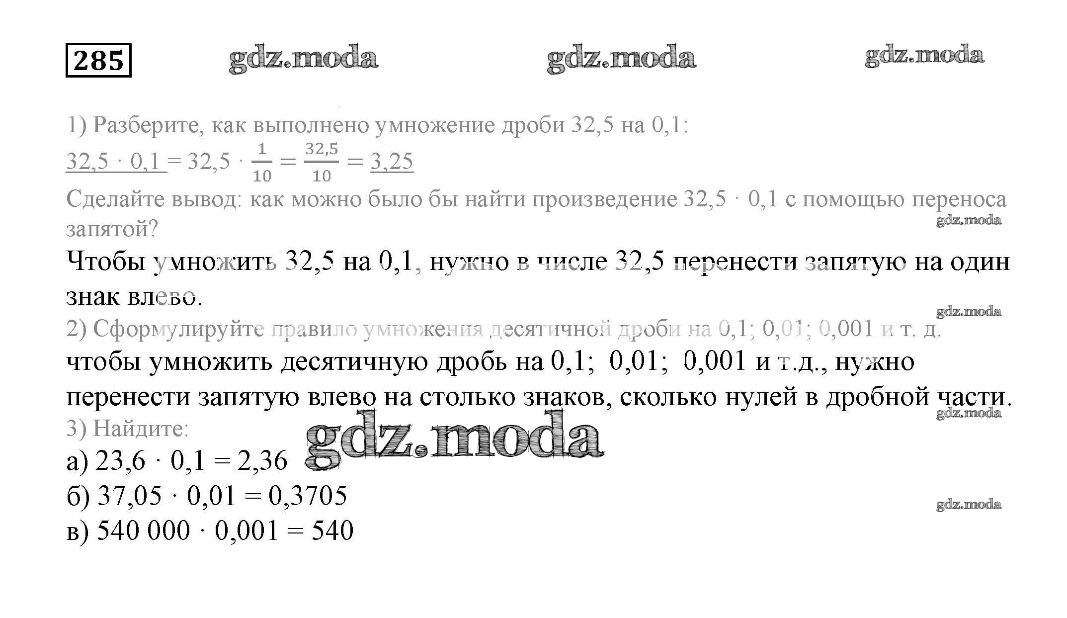 ОТВЕТ на задание № 285 Учебник по Математике 6 класс Дорофеев Академический школьный учебник