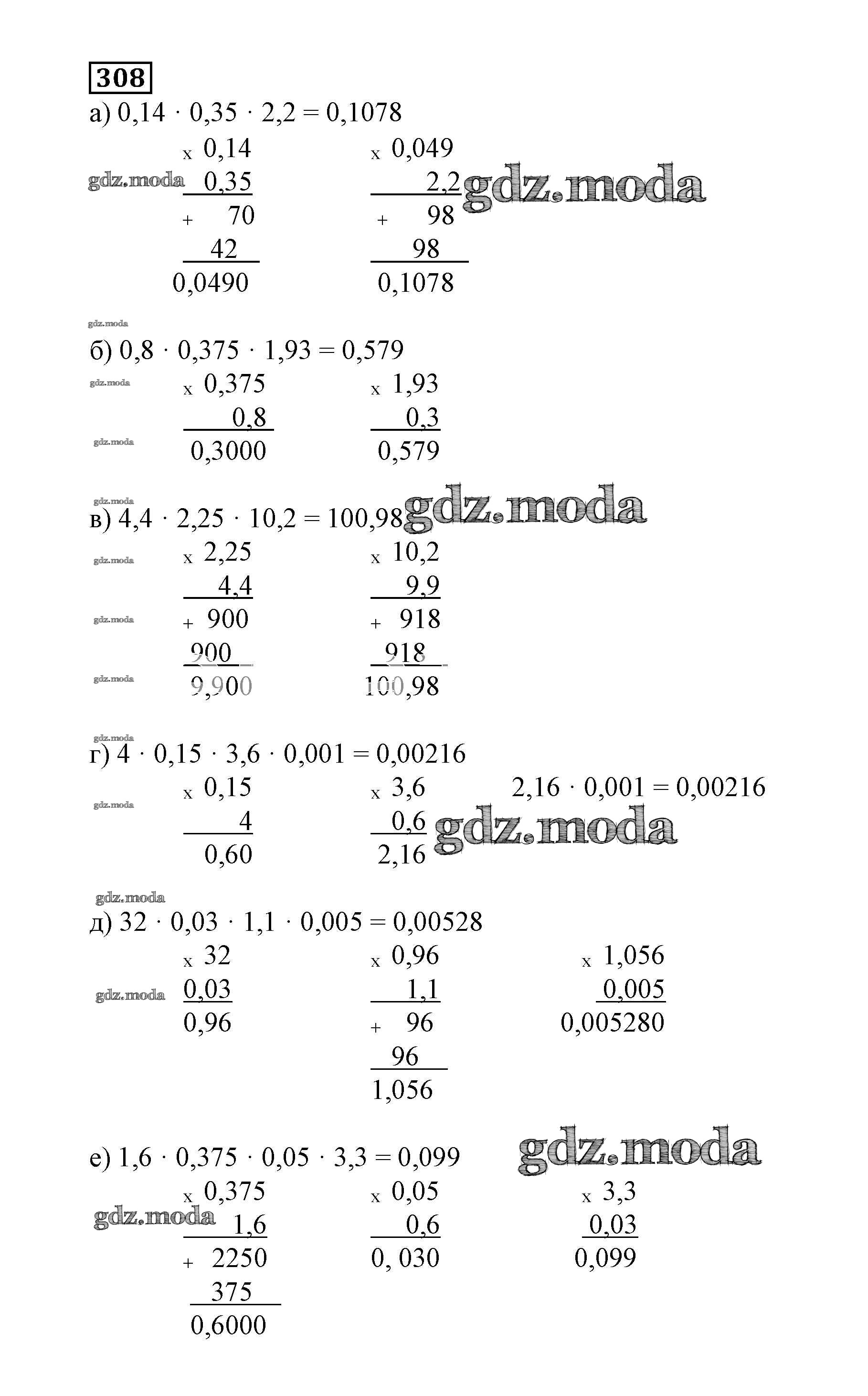 ГДЗ решение к заданию № 308 Математика 6 класс Дорофеев Г.В. Просвещение 2014 ФГОС бесплатно на гдз.мода!