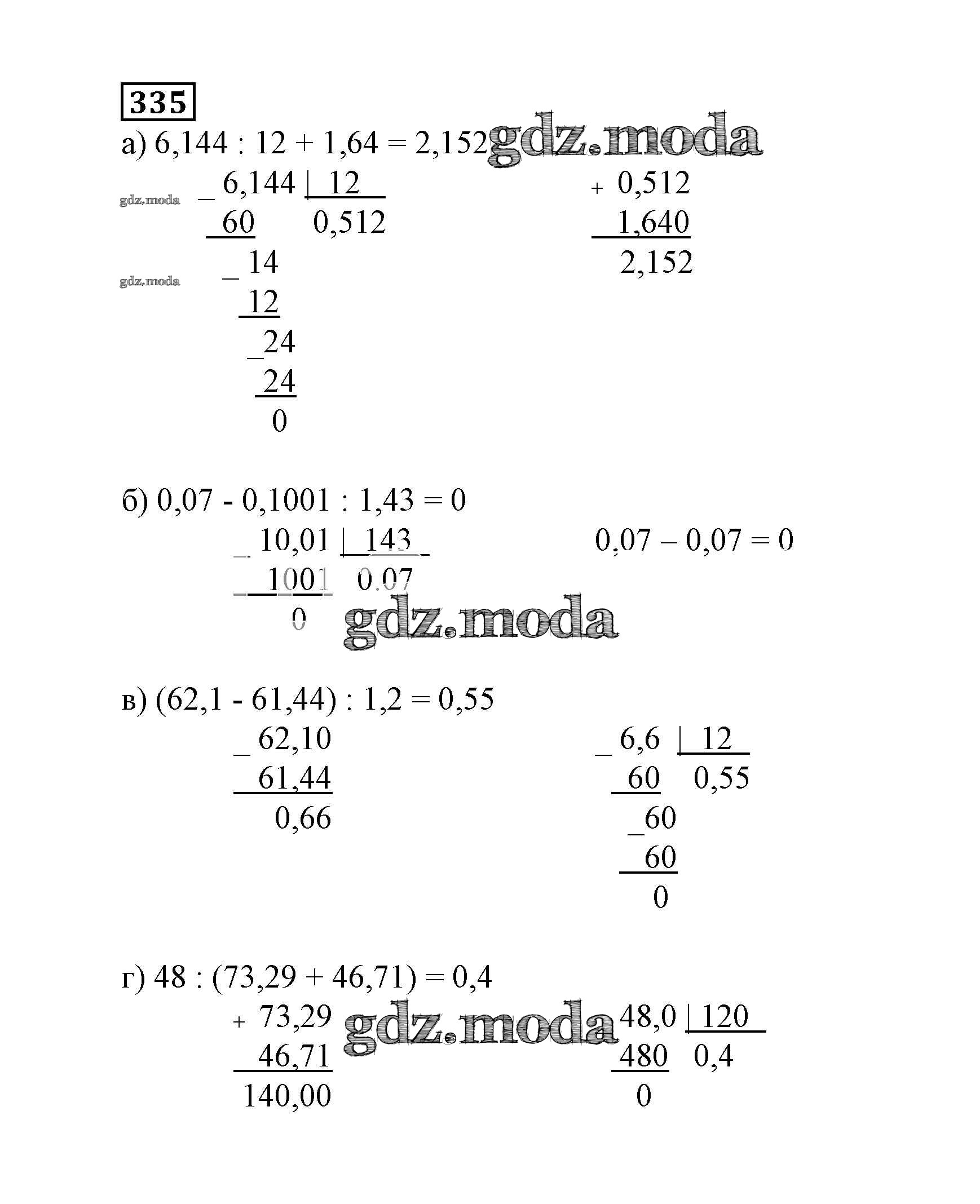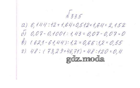 ОТВЕТ на задание № 335 Учебник по Математике 6 класс Дорофеев Академический школьный учебник