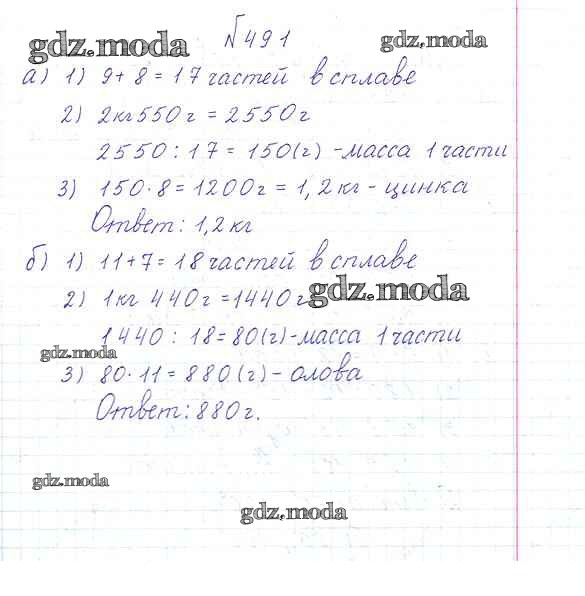 ГДЗ решение к заданию № 491 Математика 6 класс Дорофеев Г.В. Просвещение 2014 ФГОС бесплатно на гдз.мода!
