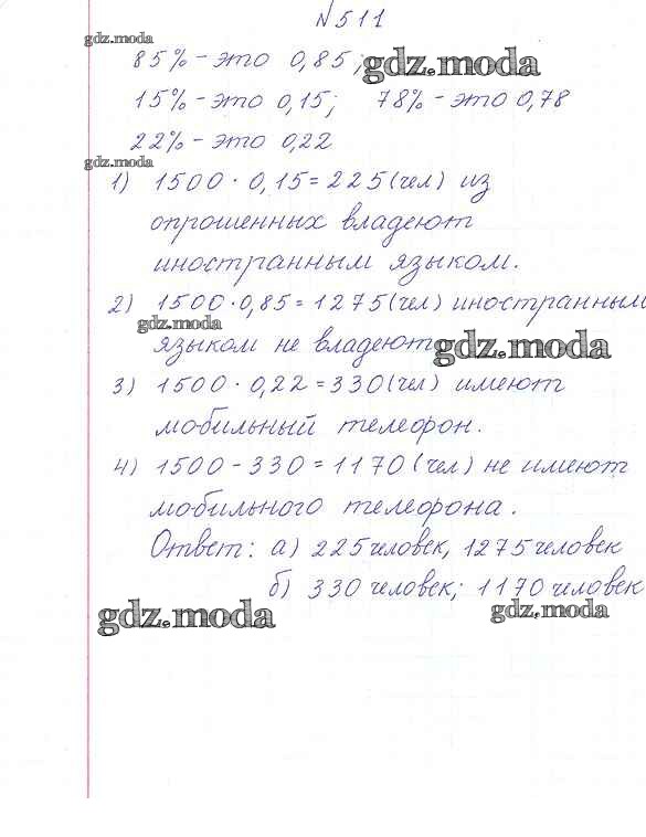 ОТВЕТ на задание № 511 Учебник по Математике 6 класс Дорофеев Академический школьный учебник