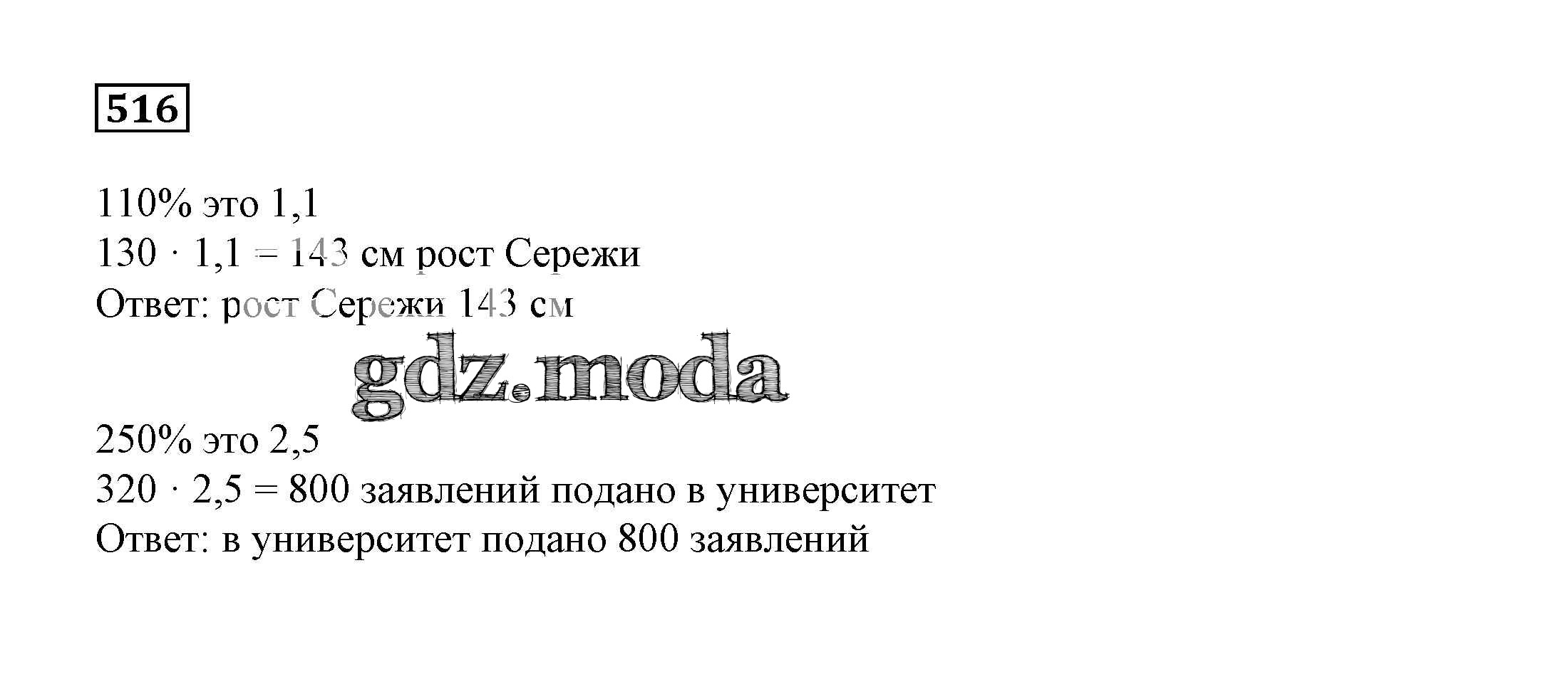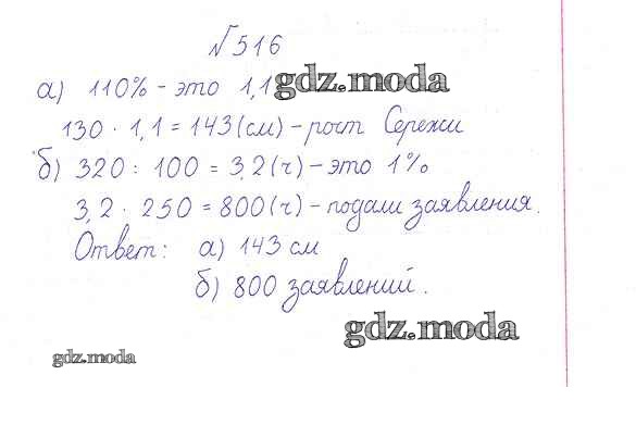 ОТВЕТ на задание № 516 Учебник по Математике 6 класс Дорофеев Академический школьный учебник