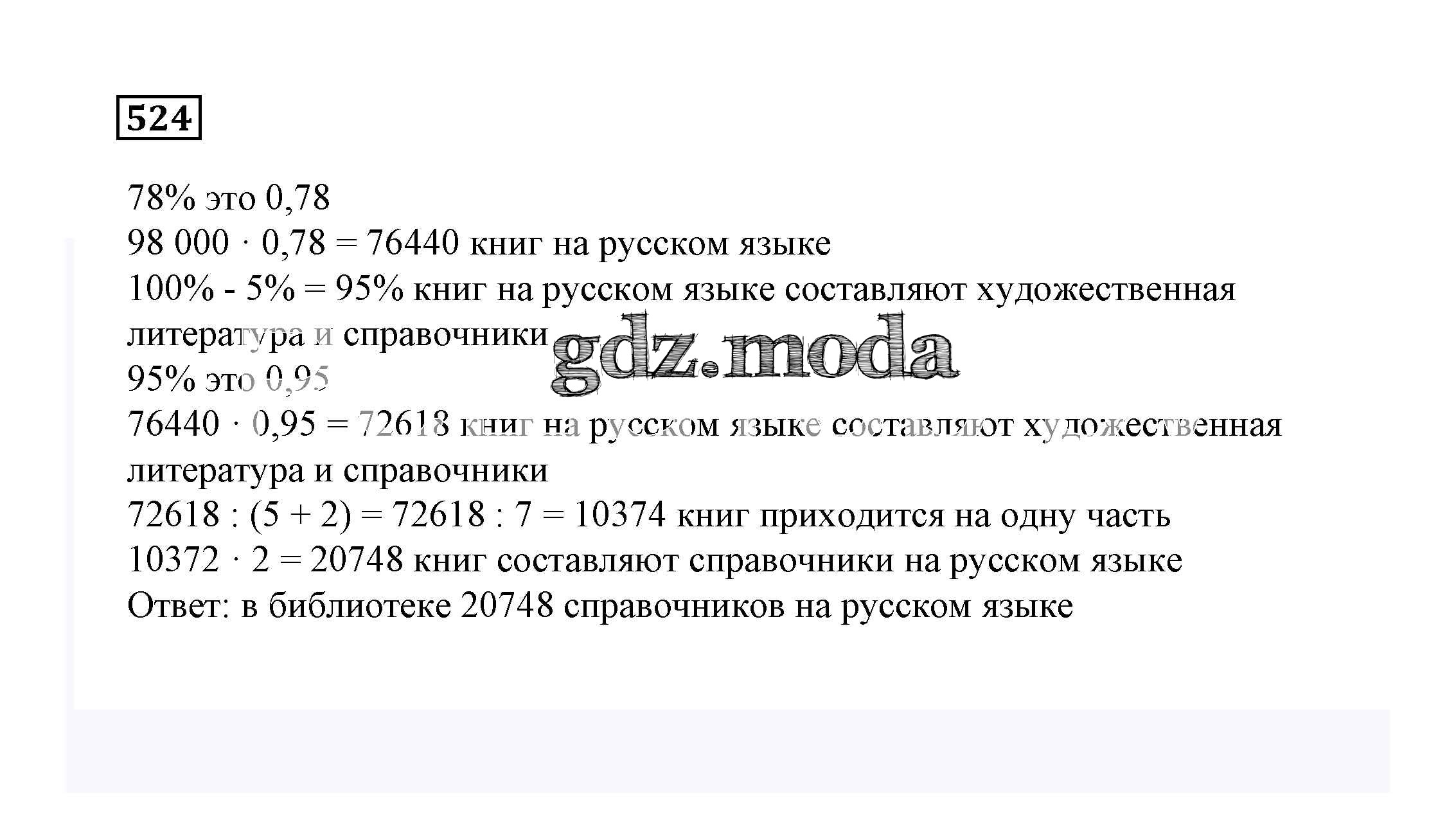 ОТВЕТ на задание № 524 Учебник по Математике 6 класс Дорофеев Академический школьный учебник