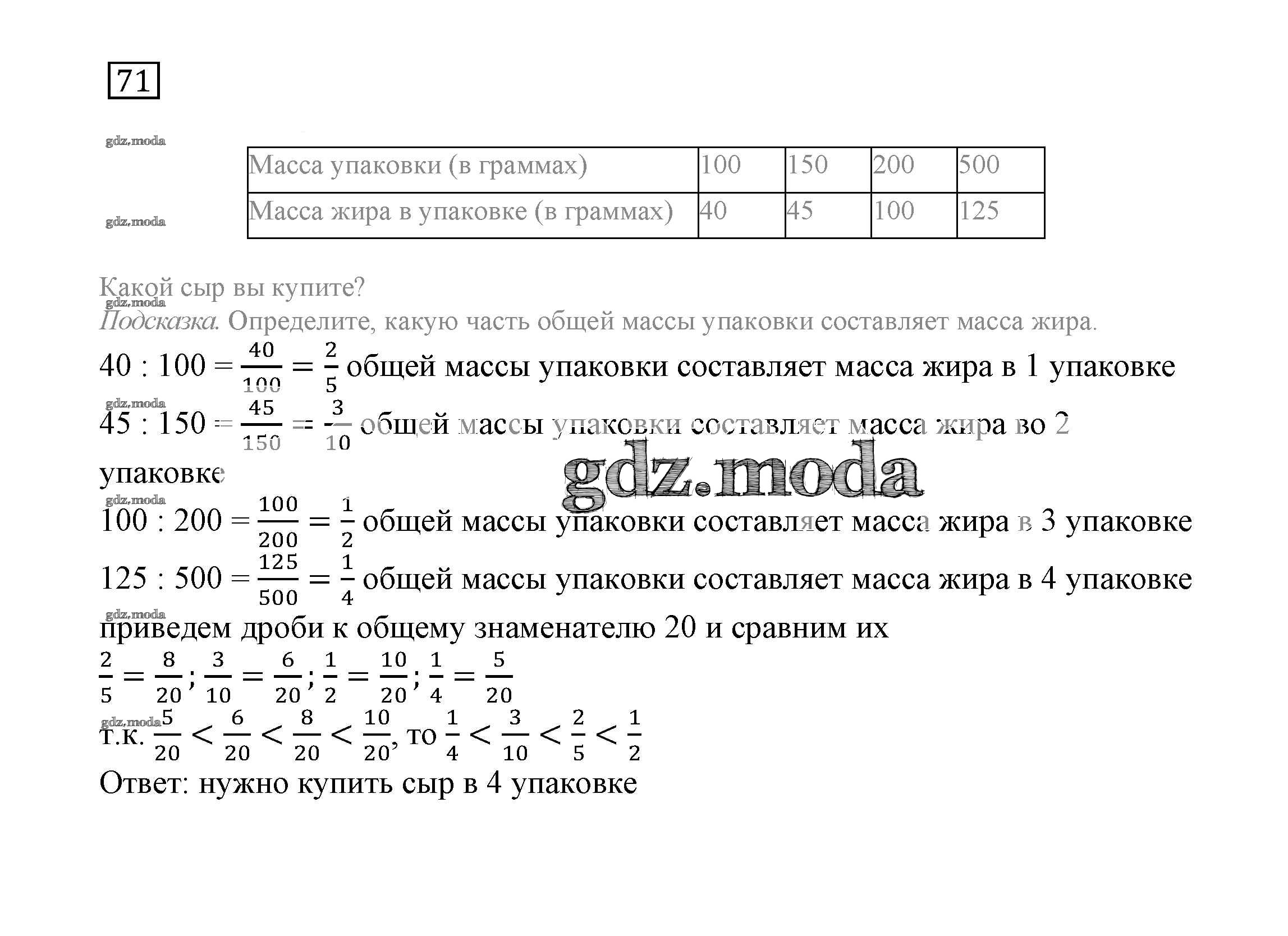 ГДЗ решение к заданию № 71 Математика 6 класс Дорофеев Г.В. Просвещение 2014 ФГОС бесплатно на гдз.мода!