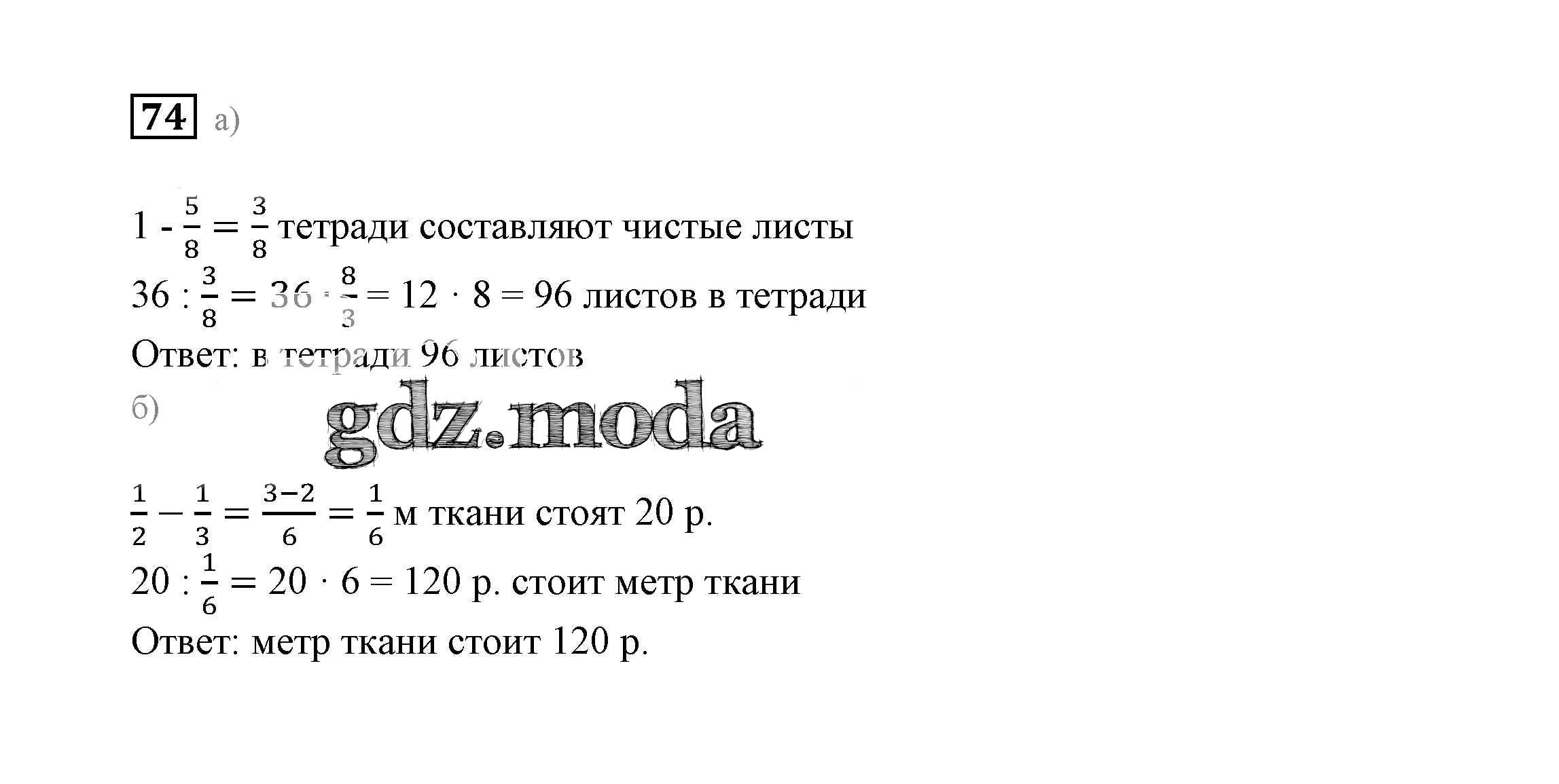 ГДЗ решение к заданию № 74 Математика 6 класс Дорофеев Г.В. Просвещение 2014 ФГОС бесплатно на гдз.мода!