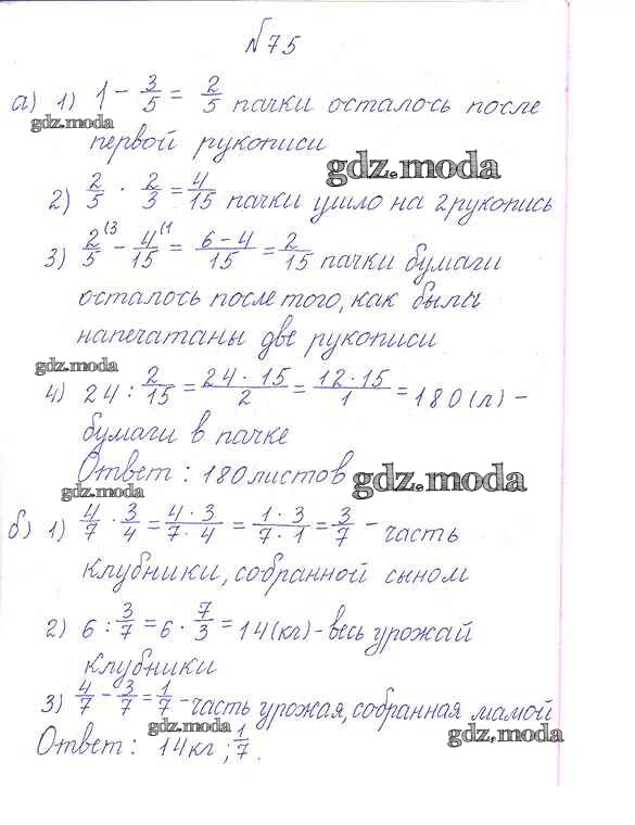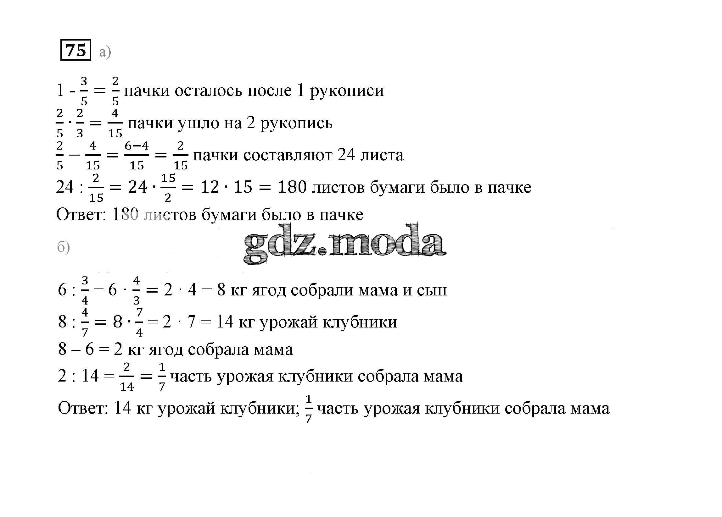 ГДЗ решение к заданию № 75 Математика 6 класс Дорофеев Г.В. Просвещение 2014 ФГОС бесплатно на гдз.мода!