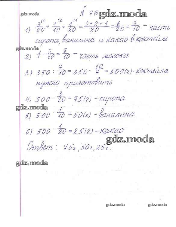 ГДЗ решение к заданию № 76 Математика 6 класс Дорофеев Г.В. Просвещение 2014 ФГОС бесплатно на гдз.мода!