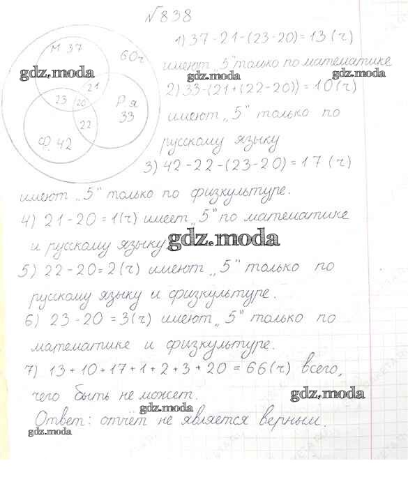 ОТВЕТ на задание № 838 Учебник по Математике 6 класс Дорофеев Академический школьный учебник