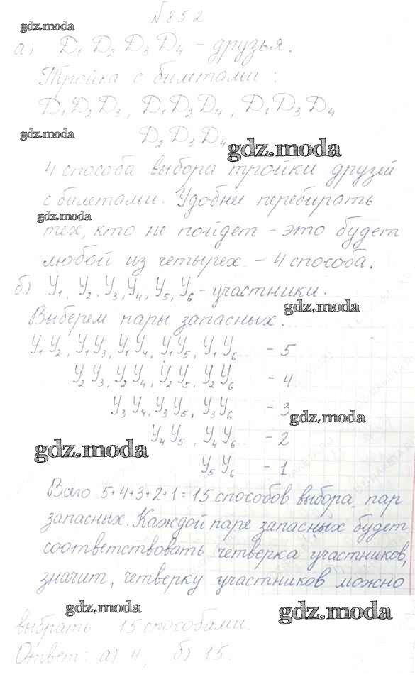 ОТВЕТ на задание № 852 Учебник по Математике 6 класс Дорофеев Академический школьный учебник