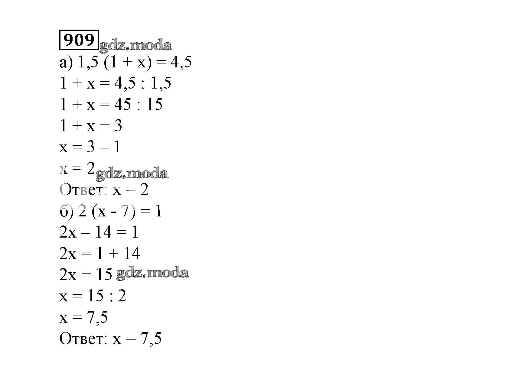 ОТВЕТ на задание № 909 Учебник по Математике 6 класс Дорофеев Академический школьный учебник