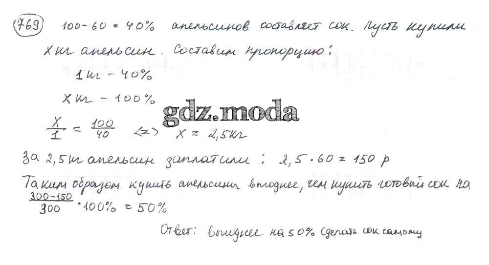 ГДЗ решение к заданию № 769 Математика 6 класс Петерсон Л.Г. Ювента 2014 Часть 1, Часть 2, Часть 3 ФГОС бесплатно на гдз.мода!