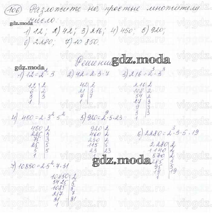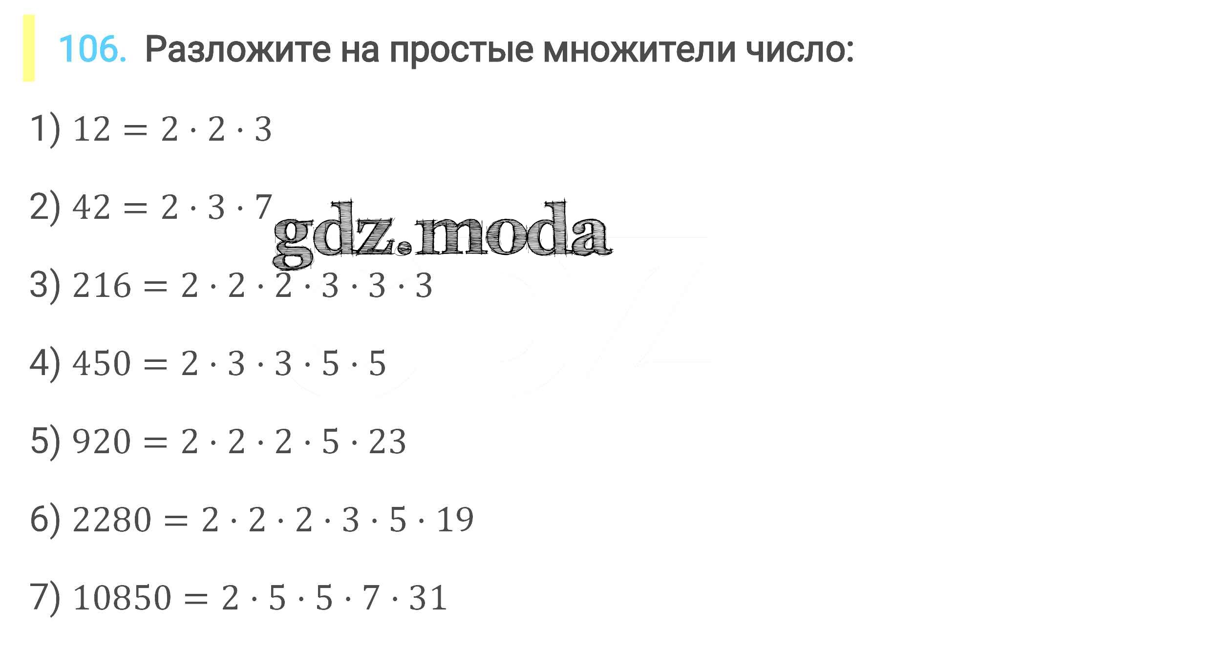ОТВЕТ на задание № 106 Учебник по Математике 6 класс Мерзляк Алгоритм успеха
